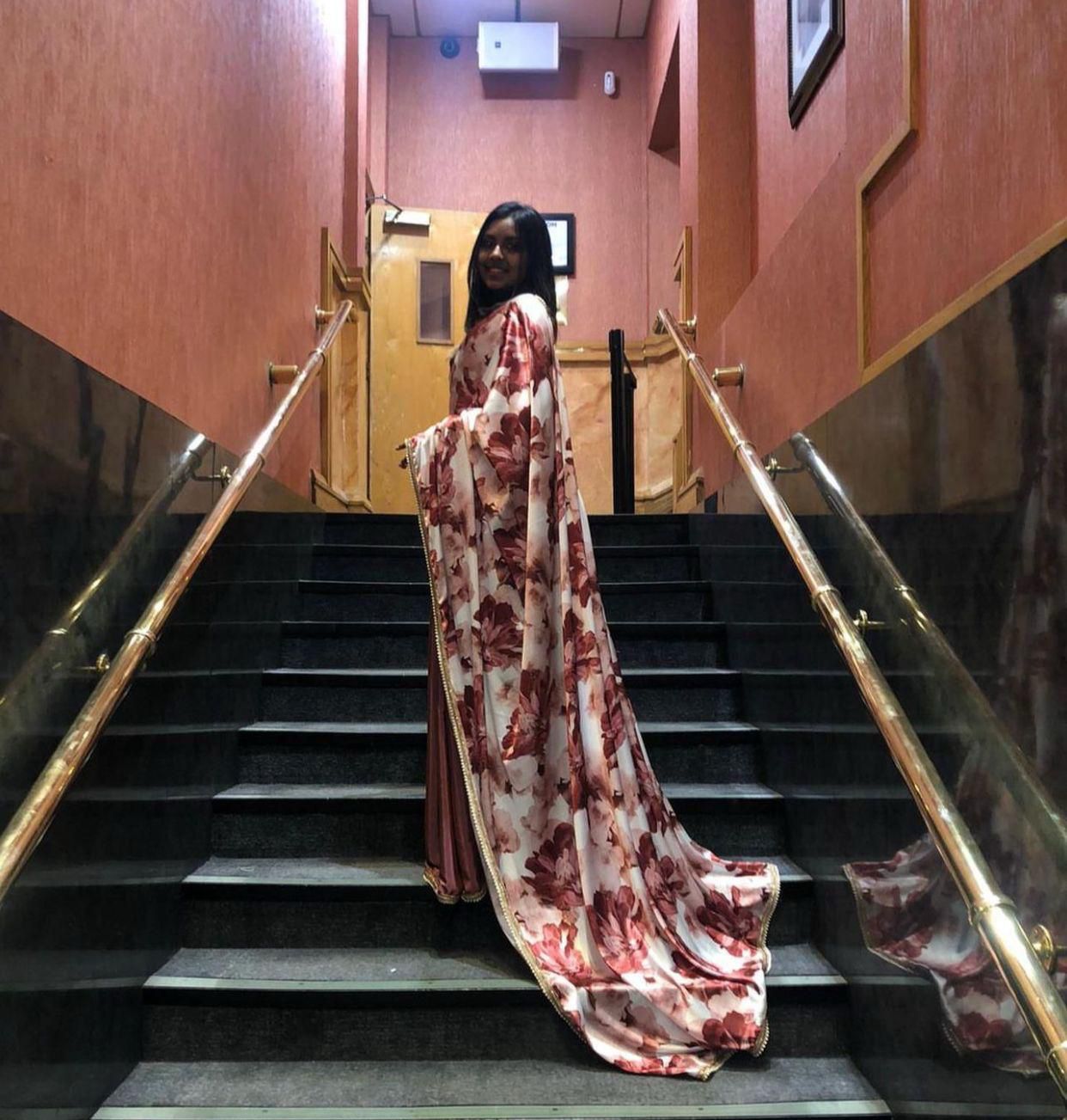 Beautiful Japani SatinDigital Print Flower Pallu S-60